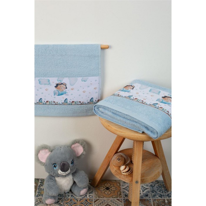 • ΠΕΤΣΕΤΑ Με Ψηφιακή Εκτύπωση Σετ 2 τεμ bebe Pilot 118 30X50,70X140 Σιελ 100% Cotton
