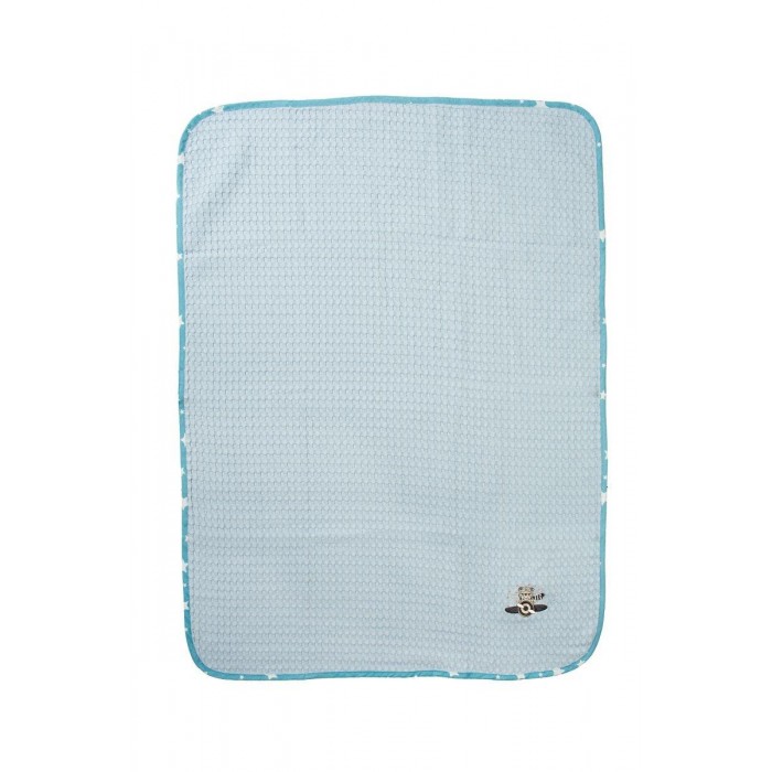 Βρεφική κουβέρτα πικέ κούνιας με ανάγλυφο σχέδιο βάφλα, χρώματος σιελ, διαστάσεων 100 x 160 cm, διακοσμημένη με χαριτωμένο κέντημα αεροπόρο και χρωματιστό ρέλι με μοτίβο αστεράκια. Κατασκευασμένη από 100% βαμβακερό, υποαλλεργικό woven πικέ ύφασμα βάρους 325 gr/m². Χάρη στην εξαιρετικά απαλή υφή της, αγκαλιάζει το μωρό σας με άνεση, ενώ η ιδιαίτερη ύφανση βάφλα επιτρέπει στο δέρμα να αναπνέει, καθιστώντας την ιδανική επιλογή για την άνοιξη και το καλοκαίρι. Συσκευασία δώρου: κουτί πολυτελείας. Η κουβέρτα είναι ελεγμένη για επιβλαβείς ουσίες με το παγκοσμίως αναγνωρισμένο πιστοποιητικό OEKO-TEX® Standard 100.