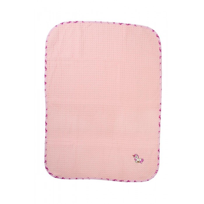 Βρεφική κουβέρτα πικέ κούνιας με ανάγλυφο σχέδιο βάφλα, χρώματος ροζ, διαστάσεων 100 x 160 cm, διακοσμημένη με χαριτωμένο κέντημα μονόκερο και χρωματιστό ρέλι με μοτίβο κορδελίτσες. Κατασκευασμένη από 100% βαμβακερό, υποαλλεργικό woven πικέ ύφασμα βάρους 325 gr/m². Χάρη στην εξαιρετικά απαλή υφή της, αγκαλιάζει το μωρό σας με άνεση, ενώ η ιδιαίτερη ύφανση βάφλα επιτρέπει στο δέρμα να αναπνέει, καθιστώντας την ιδανική επιλογή για την άνοιξη και το καλοκαίρι. Συσκευασία δώρου: κουτί πολυτελείας. Η κουβέρτα είναι ελεγμένη για επιβλαβείς ουσίες με το παγκοσμίως αναγνωρισμένο πιστοποιητικό OEKO-TEX® Standard 100.