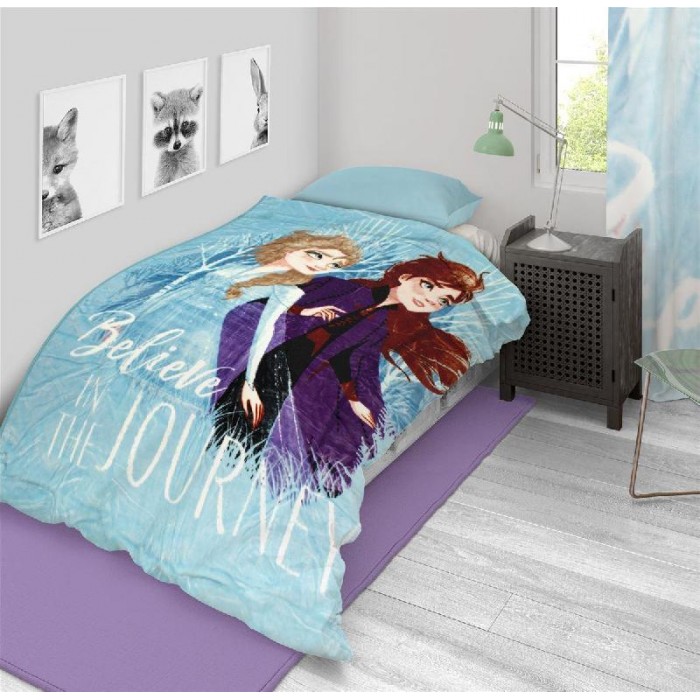 Κουβέρτα βελουτέ Disney Frozen 160Χ220 με ολοκληρωμένη ψηφιακή απεικόνηση των αγαπημένων Elsa και Anna για Μονό κρεβάτι, απαλή και ζεστή με γούνινη υφή και ανεξίτηλα χρώματα. Συσκευασία βαλιτσάκι Polybag με φερμουάρ και χερούλι.