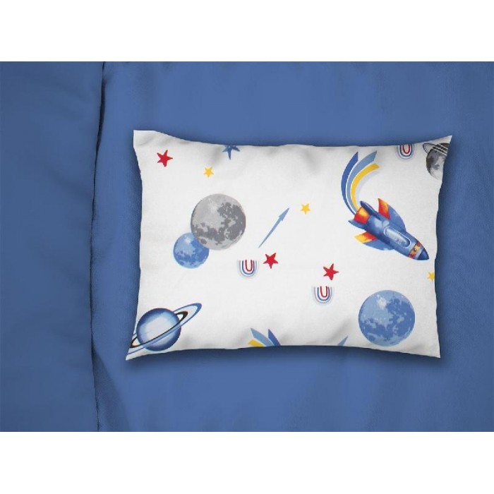 • Μαξιλαροθήκη Εμπριμέ bebe Space Mission 184 35X45 White-Blue 100% Cotton