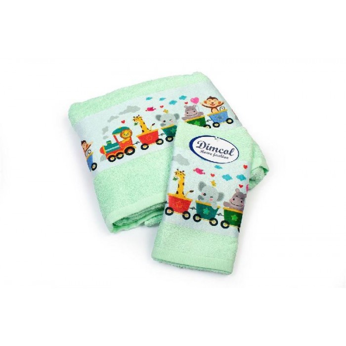 • Πετσέτα Σετ 2 τεμ Με Ψηφιακή Εκτύπωση bebe Train 348 30X50,70X140 Mint 100% Cotton