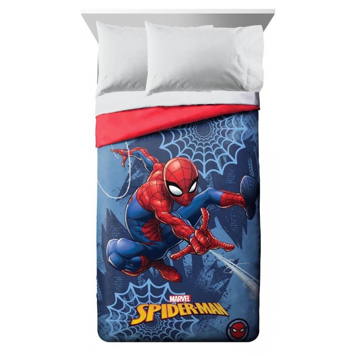 Aπαλό και ζεστό πάπλωμα Disney Home, διαστάσεων 160X240 cm, με γέμιση αντιαλλεργικής βάτας. Κατασκευασμένο από 100% Microfiber ύφασμα, με σχέδιο ψηφιακής εκτύπωσης που απεικονίζει τον αγαπημένο ήρωα της Marvel, Spider-Man. Συσκευασία βαλιτσάκι PVC με φερμουάρ και χερούλι.